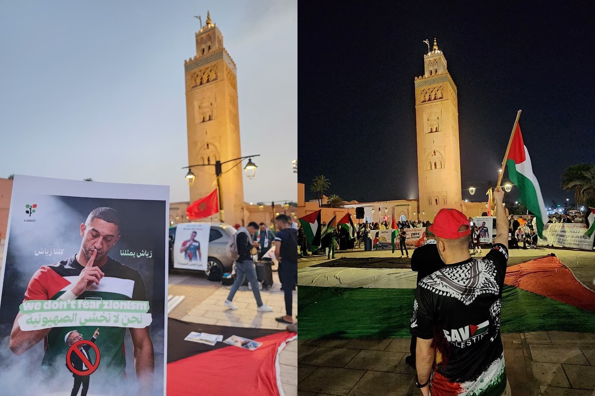 كما وجهوا رسائل تضامن للاعب الدولي المغربي حكيم زياش، إشادة بمواقفه المشرفة تجاه القضية الفلسطينية، واستنكاراً لما تعرّض له من تهديدات من طرف إيتمار بن غفير.