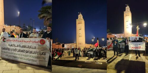 نظمت المبادرة المغربية للدعم والنصرة بمراكش الوقفة الأسبوعية التضامنية مع الشعب الفلسطيني مساء يوم الجمعة 17 أبريل 2026 بساحة جامع الكتبية، تحت شعار “وقفة الغضب من أجل المسرى والأسرى”.