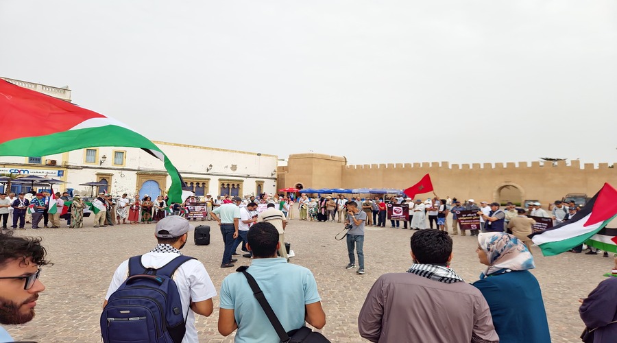 يُشار إلى أن مدينة الصويرة شهدت وقفة شعبية نسائية الجمعة الماضية، دعا إليها “منتدى الزهراء للمرأة المغربية”، رفع خلالها المشاركات أعلام فلسطين ولافتة كتب عليها “لا سلام مع الاحتلال”، ورددوا شعارات من قبيل “افتحوا المعابر وأوقفوا المجازر”، و”لا سلام لا استسلام المقاومة إلى الامام، و”غزة غزة.. رمز العزة”، وأخرى تحيي “أسطول الصمود العالمي”.