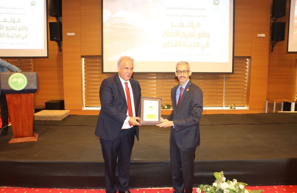 وجرت مراسم تسليم درع “الألكسو” لمحمد سالم الشرقاوي المدير المكلف بتسيير وكالة بيت مال القدس الشريف في اختتام أشغال مؤتمر “واقع تعليم الأطفال في مدينة القدس” الخميس 19 شتنبر 2024 بتونس، بحضور وزير التربية والتعليم العالي الفلسطيني أمجد برهم، ووزير شؤون القدس أشرف الأعور إلى جانب سفير دولة فلسطين لدى الجمهورية التونسية، وممثلي إدارة فلسطين بجامعة الدول العربية وأطر ومسؤولي “الألكسو”.