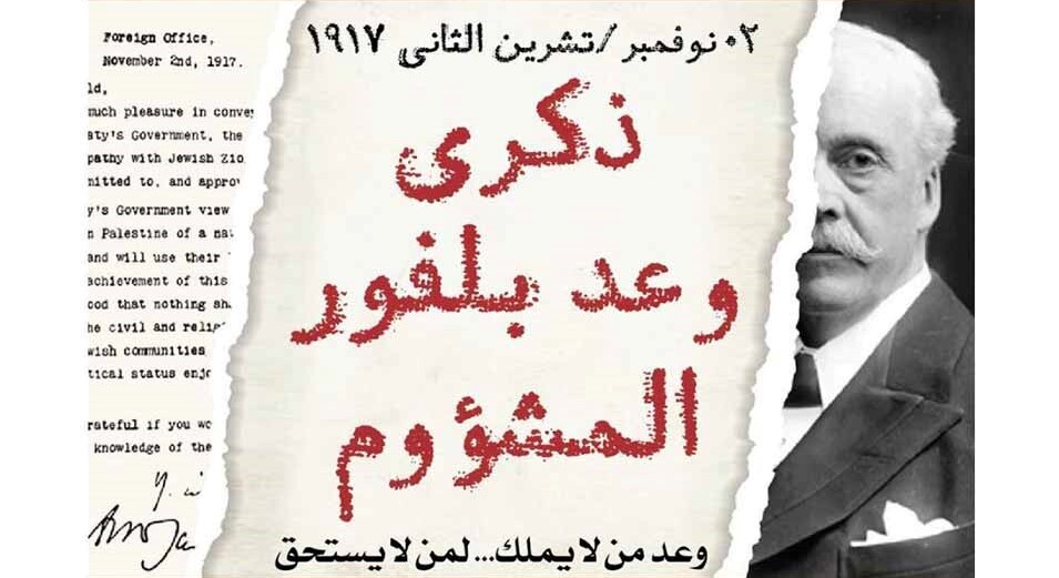يصادف اليوم السبت الثاني من نونبر الذكرى الـ107 لصدور ما يُعرف بـ”إعلان بلفور المشؤوم”، الذي منحت بموجبه بريطانيا الحق لليهود في إقامة وطن قومي لهم في فلسطين.