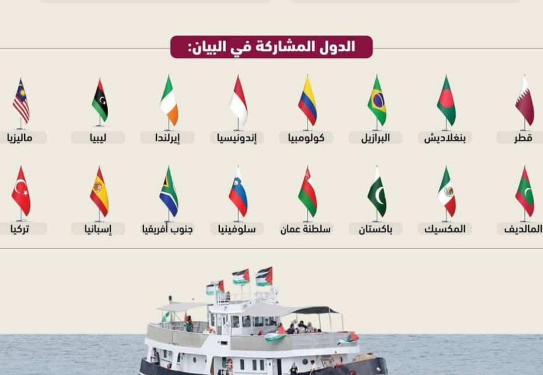 قال وزراء خارجية 16 دولة في بيان لهم، إن “أي انتهاك للقانون الدولي وحقوق الإنسان للمشاركين في أسطول الصمود العالمي، بما في ذلك الاعتداءات على السفن في المياه الدولية أو الاحتجاز غير القانوني، سيفضي إلى المساءلة.