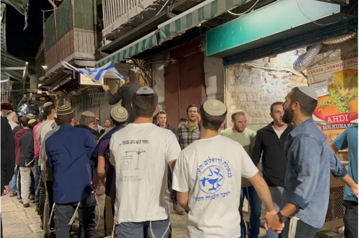 وشملت الانتهاكات أداء الرقصات والغناء والطقوس التوراتية عند أبواب الأقصى من الخارج كل ليلة، وإشعال الشمعدان (رمز ديني يهودي) مساء كل يوم برعاية الحاخامية الرسمية – قيادات دينية- في ساحة البراق، وبإشراف جماعات الهيكل المتطرفة أمام باب المغاربة داخل الجسر الخشبين فيما اقتحم أحد المتطرفين المسجد بقميص طُبع عليه العلم “الإسرائيلي”.