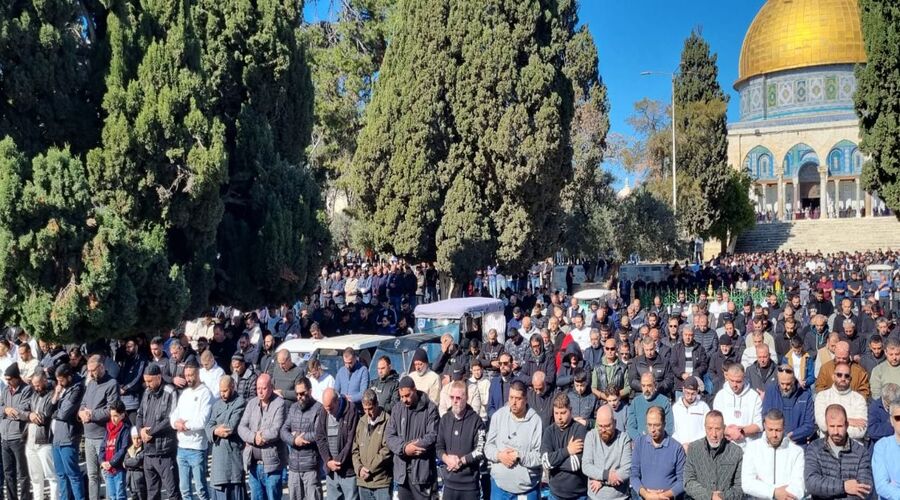 أدى 50 الف مصلّ صلاة الجمعة في المسجد الأقصى المبارك، اليوم 03 يناير 2024، في ظل الإجراءات العسكرية المشددة التي تفرضها سلطات الاحتلال “الإسرائيلي” على الوصول إلى المسجد.