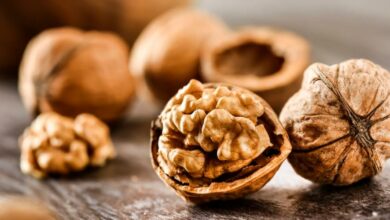 2- الجوز : يحفز عمل الدماغ أيضا بالإضافة إلى ذلك، جميع أنواع المكسرات لها قيمة غذائية وفوائد صحية. ويساعد الجوز على تحسين الذاكرة، لأنه يحتوي على مادة الليسيثين، التي تنشط عمليات الذاكرة في الدماغ. لذلك ينصح بتناول 3-4 حبات متوسطة الحجم منه يوميا