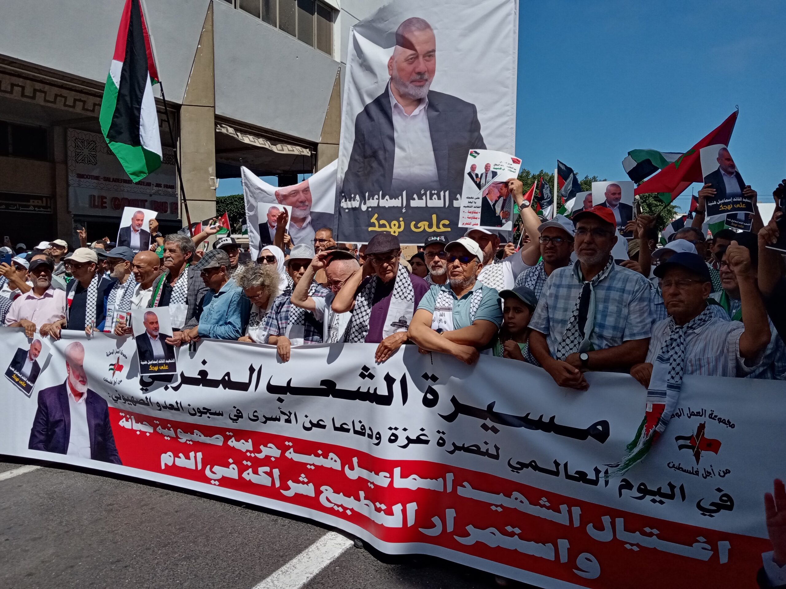 آلاف المغاربة ينددون باغتيال إسماعيل هنية في مسيرة وطنية بالرباط