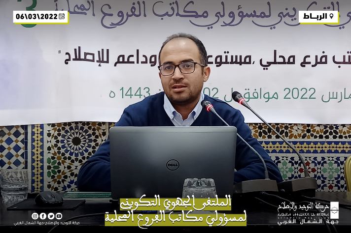 جاء ذلك في إطار الملتقى التكويني التواصلي الثالث لمسؤولي ومسؤولات الفروع لجهة الشمال الغربي والذي نظمه القسم الجهوي للتكوين يوم الأحد 6 مارس 2022 الموافق ل 03 شعبان 1443 بالمقر المركزي للحركة تحت شعار “من أجل مكتب فرع محلي : مستوعب، رائد وداعم للإصلاح”، بهدف تعزيز التواصل مع القيادة المركزية للحركة حول أهم القضايا الراهنة.