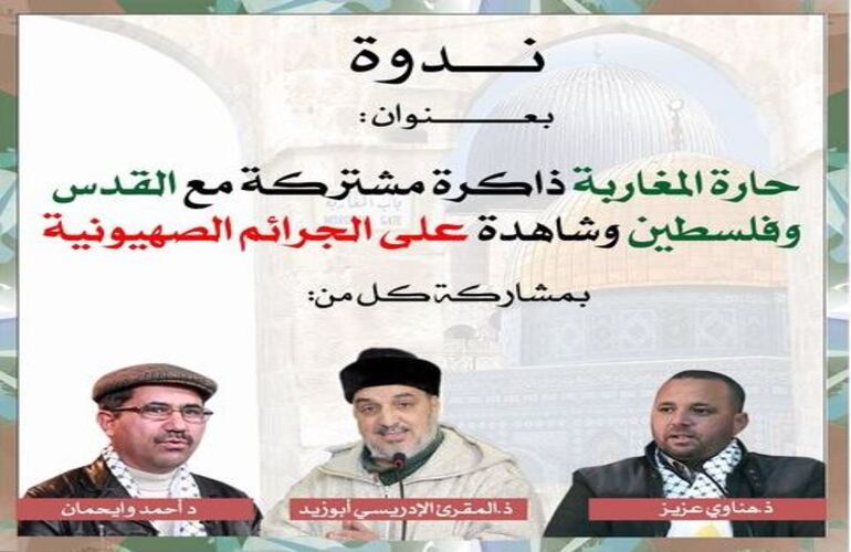 تنظم المبادرة المغربية للدعم والنصرة ندوة بعنوان :“حارة المغاربة ذاكرة مشتركة مع القدس وفلسطين وشاهدة على الجرائم الصهيونية”.