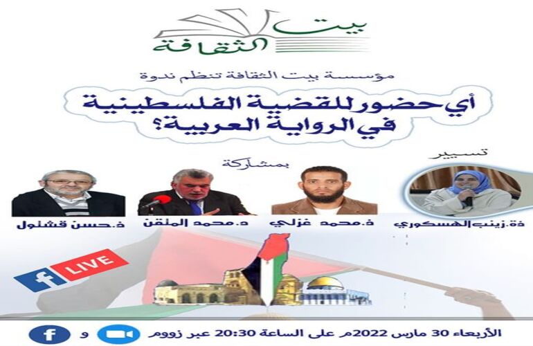 مؤسسة بيت الثقافة تنظم ندوة :”أي حضور للقضية الفلسطينية في الرواية العربية؟”