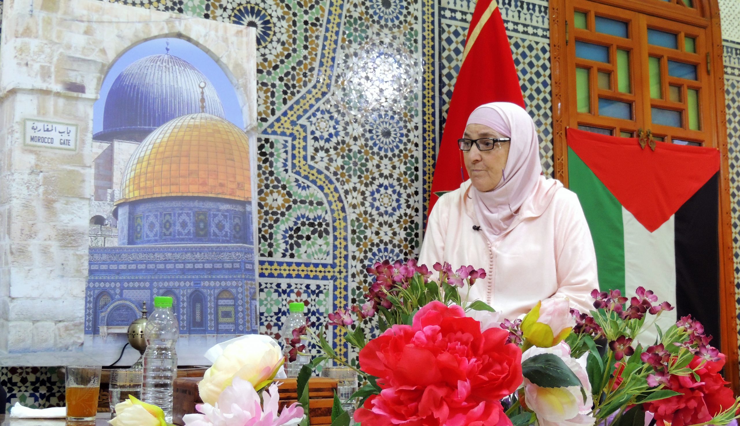 وأشارت أن أبناء الجالية المغربية مازالوا مقيمين في مدينة القدس، حيث تقيم هي في زاوية المغاربة قريبة جدا من الحي القديم وعلى بعد أمتار من المسجد الأقصى المبارك، واستحضرت ذكريات طفولتها في حي المغاربة قبل هدمه، حيث عاشوا كأسرة واحدة، وكانت الأفراح والأحزان مشتركة، وكانوا يعيشون بأمان، فلم تكن الأسر تقلق على بناتها إذا تأخرت مساء سواء أثناء اللعب او لتذاكر الدروس، لانهم يعرفون بعضهم بعضا جيدا، وكل فرد بهذا الحي يعرف الفرد الاخر، وكانت العوائل المغربية متشبثة بالتراث المغربي الأصيل حيث تقدم في أعراسها أكلة “الكسكس ” المغربي وكأس “الأتاي” (الشاي الأخضر) الذي يكمل المائدة وكأنك في المغرب.