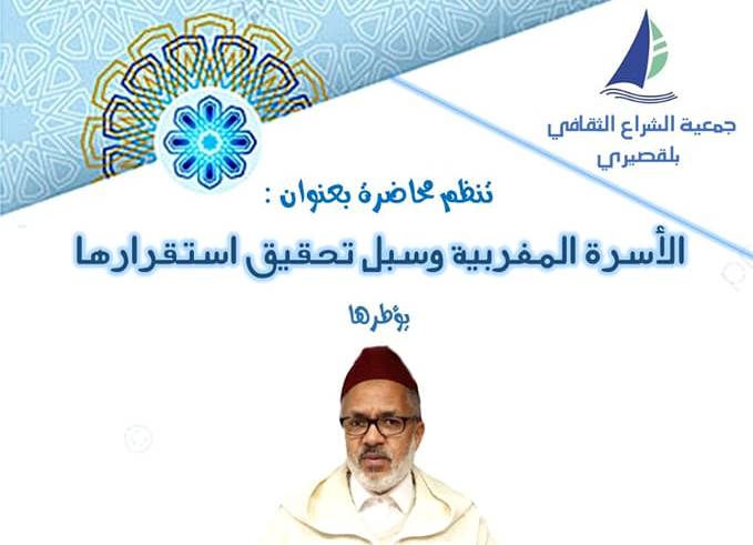 تنظم جمعية الشراع الثقافي بلقصيري، محاضرة بعنوان : “الأسرة المغربية وسبل تحقيق استقرارها”.